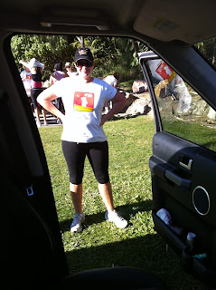 I dressed in what I thought would be my comfiest pants (and they were) and was relieved that the official Ks for Kids tee felt nice to wear. I had packed an alternative outfit in the car to change into if need be at the 2nd 10 kms. There is nothing worse or more distracting then having painful chafing occuring anywhere .......